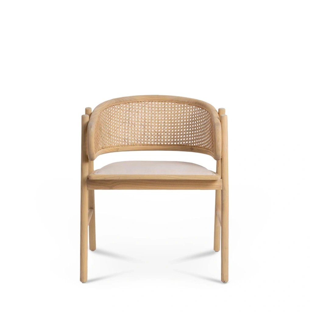 Silla vintage de madera para comedor o salón. Su asiento es resistente y cómodo. Tapizado en un color crudo que aporta calidez a tu espacio.