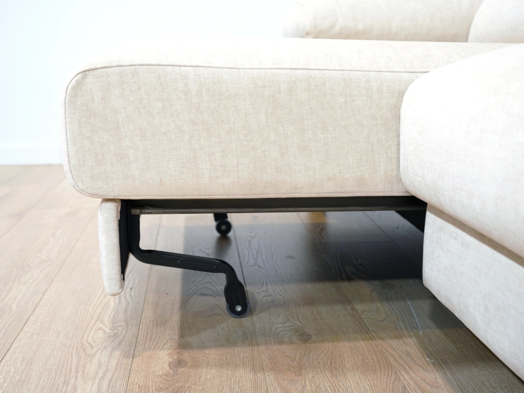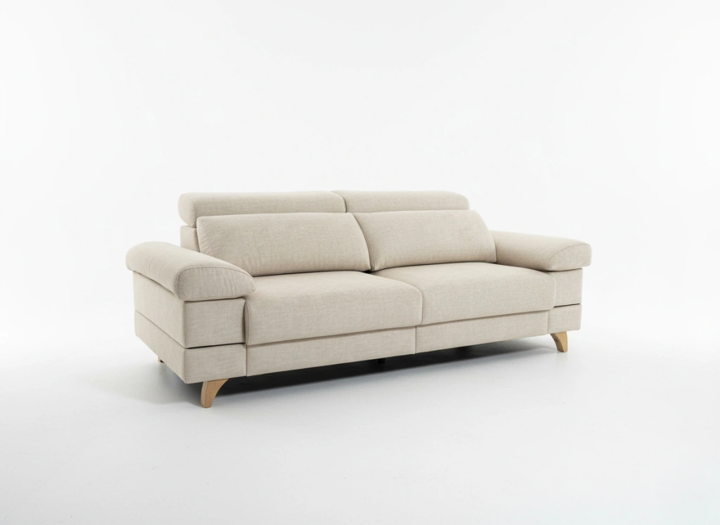 ¿Vas a pegar tu sofá a la pared? El modelo Aura puede ir pegado al 100%, sin dejar ningún espacio. Podrás accionar tu cabecero de carraca italiana sin tener que mover el sofá. Un lujo que te facilita el día a día.