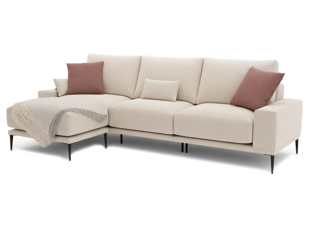 Este sofá modular con puff es un modelo con estructura de madera de pino maciza, asegurando durabilidad y estabilidad. Sus sentadas, con espuma de 30 kg y doble capa de muelles ensacados, ofrecen una comodidad excepcional. Su respaldo fijo de fibra hueca siliconada mantiene la forma y mejora el soporte. Cuenta con brazos rectos de líneas limpias y patas altas de 17 cm que facilitan la limpieza y aportan un diseño moderno.