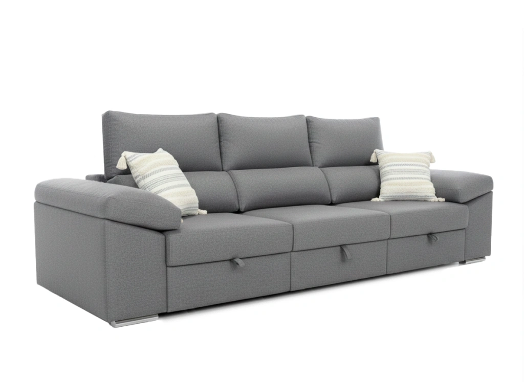 Asientos:Asientos deslizantes de hasta 105 cm con apoyo al suelo para darle una mayor consistencia aún al sofá .