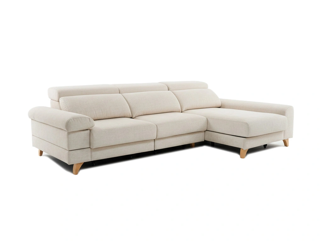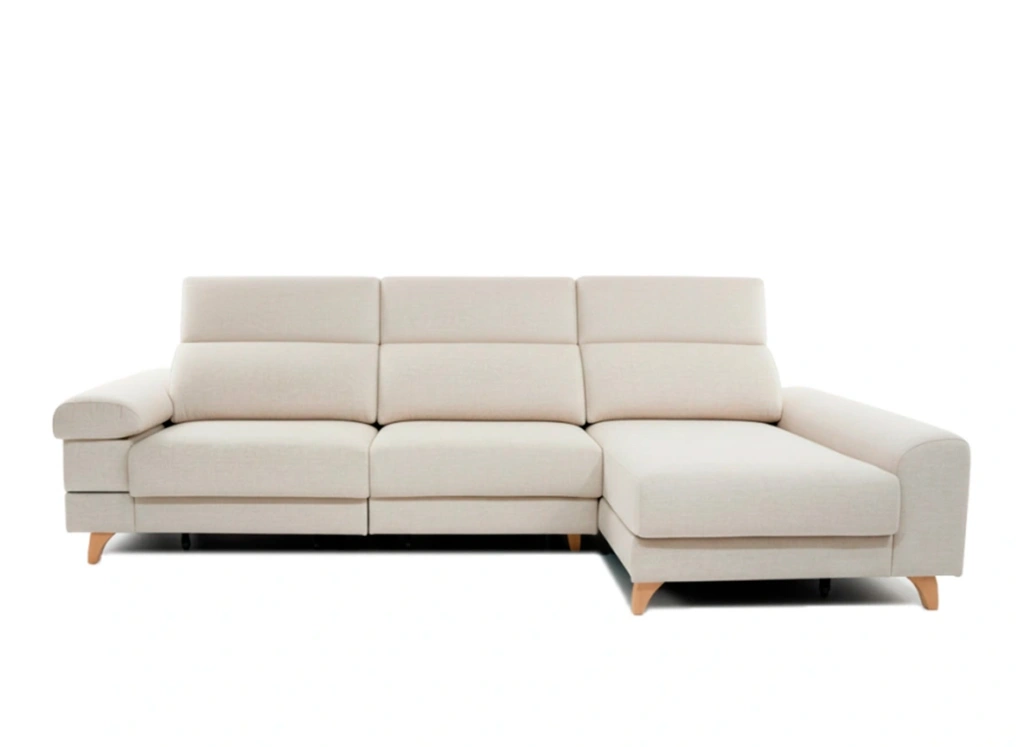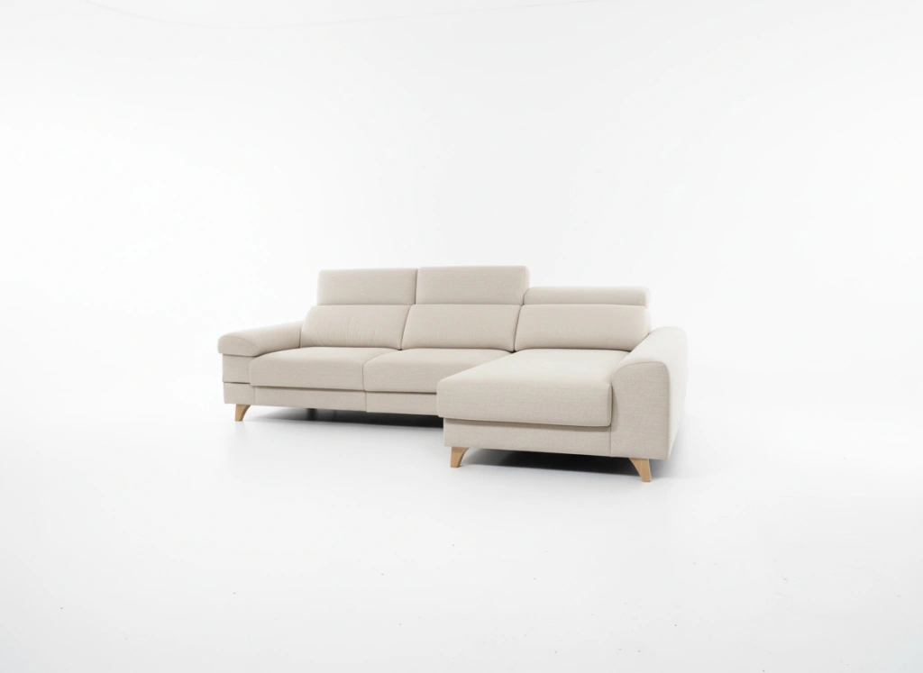 El modelo Aura en su versión con chaise longue destaca por tener todo lo que siempre nos pedís en un sofá. Sentadas mullidas con una capa de visco, patas alta y apoyo al suelo, cabeceros reclinables pero poder pegarlo a la pared, brazo extraíble con arcón... Incluso puedes pedir tu chaise longue extraíble ¿Se puede pedir algo más? ¡Hazlo!
