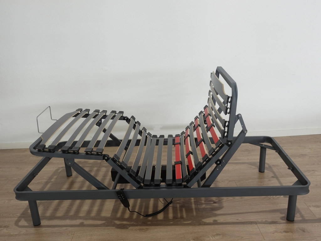 Su diseño se integra perfectamente en cualquier estilo de decoración, mientras que su estructura robusta soporta el peso de forma uniforme. Con un control remoto intuitivo y fácil de usar, puedes cambiar de posición sin esfuerzo, mejorando tu postura y reduciendo molestias articulares. El somier articulado es la inversión perfecta para quienes buscan combinar lujo, funcionalidad y cuidado de su bienestar, permitiéndote disfrutar de un descanso reparador cada noche.