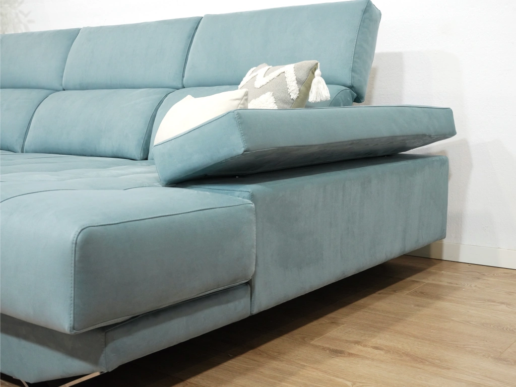 El Modelo Dalí es uno de los sofás chaise longue estrella de Sofás Valencia. Su diseño y la comodidad, que se puede apreciar a simple vista, destacan por encima de todo. Cuenta con un respaldo con riñonera, por lo que la espalda descansa plenamente. Sus brazos con almohadilla son perfectos para tumbarte a la larga y descansar.
