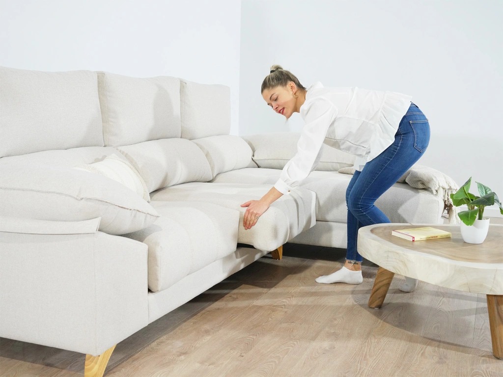 Pata alta de madera de 10 cm permitiendo el paso del robot aspirador bajo el sofá para mantener tu salón limpio.