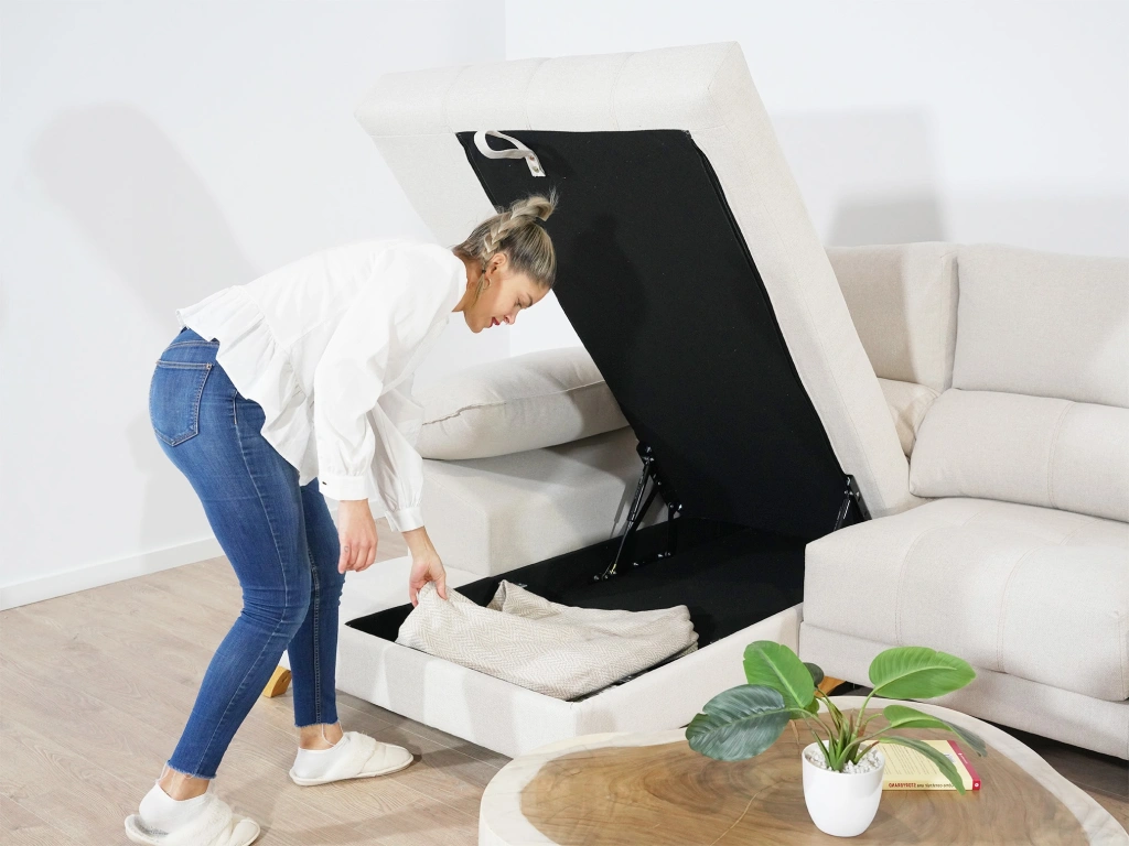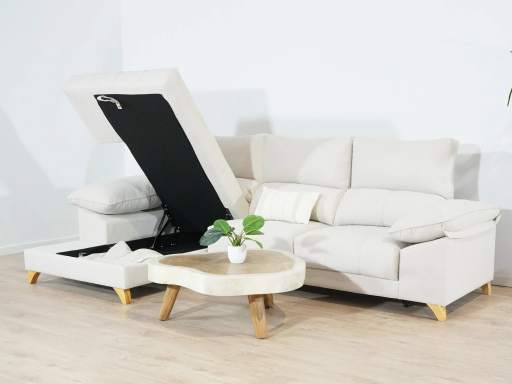 El sofá chaise longue express Río montado en tu casa en 3-7 días laborales. Un modelo que destaca por su chaise longue con arcón y sentadas muy suaves y mullidas de 30KG HR. Además, son extraíbles para ganar más profundidad al sofá en caso de necesitarlo. Sus cabeceros son reclinables y los brazos de almohadilla para asegurar que tu posición sea cómoda, segura y sin dañar tus cervicales. Las patas altas de madera garantizan una limpieza más fácil y una amplitud visual mucho mayor.