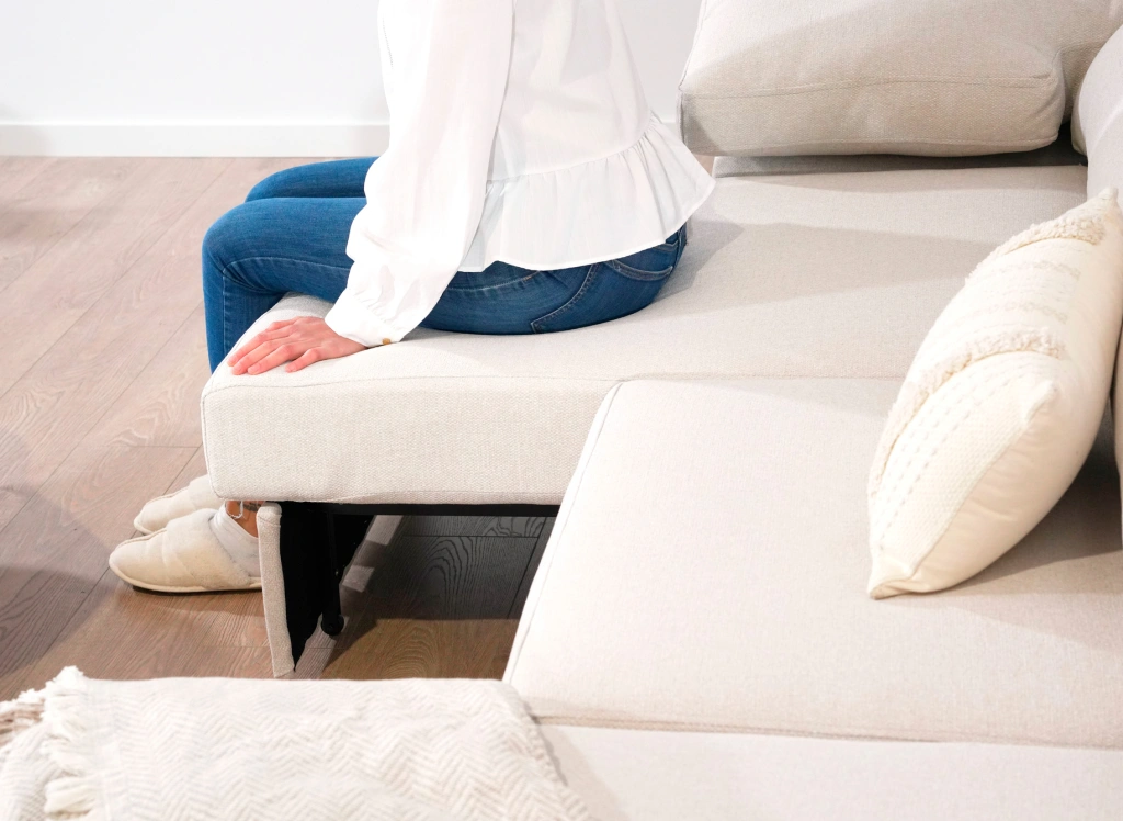 Sofá con asientos deslizantes de hasta 105cm con apoyo al suelo para darle una mayor consistencia aún al sofá. Espuma de alta calidad con densidad de 30kg HR aportando una comodidad extraordinaria al modelo Tarragona.