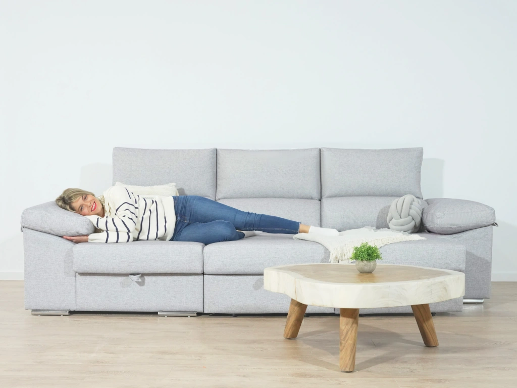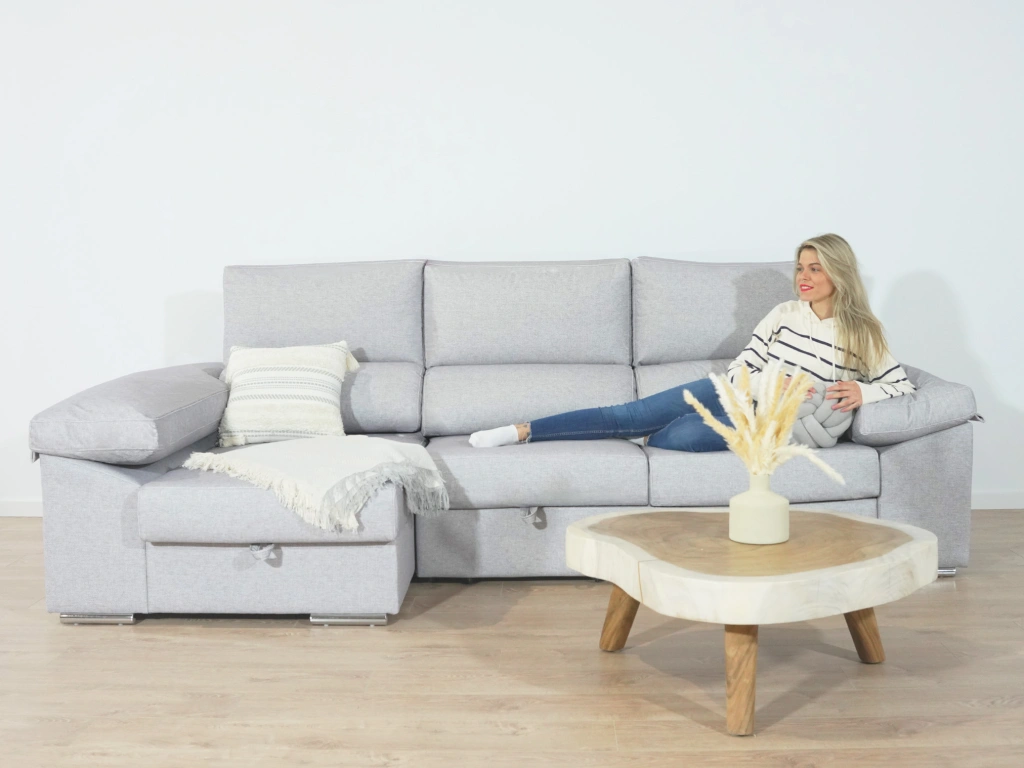 El chaise longue Tarragona es uno de los sofás más completos. Cuenta con un arcón GRATIS en el chaise longue aportando un gran espacio de almacenamiento para todo tipo de objeto. Además, sus asientos extraíbles con apoyo al suelo aportan comodidad y estabilidad. Todo esto sin dejar de lado comodidad, que no se queda atrás gracias a sus brazos mullidos y su espuma de calidad.