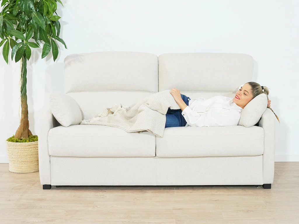 El sofá cama Dora es una opción perfecta si buscas comodidad tanto para sentarte como para dormir. Incorpora un colchón de viscoelástica de 140x190 cm y 15 cm de grosor, que ofrece un descanso muy confortable para el día a día o para tus invitados.