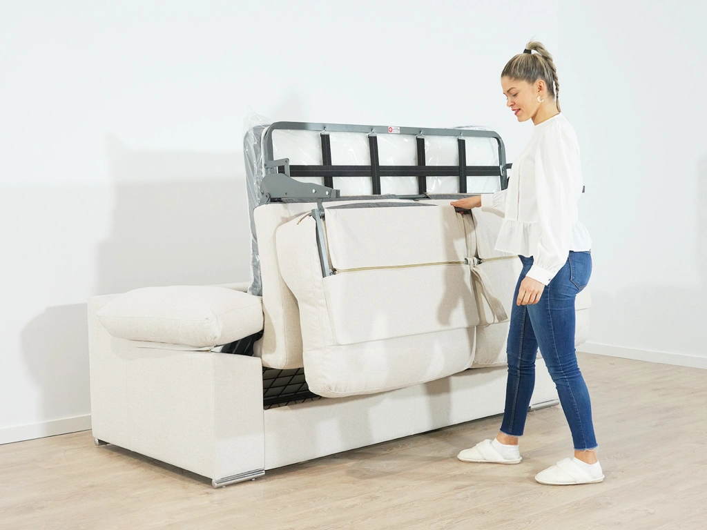 El Sofá Cama Modelo Luna destaca por su colchón de viscoelástica de medida 140cmx185cm y su grosor de 15 cm.