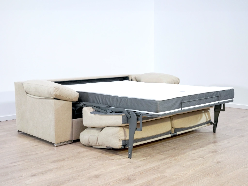 El Sofá Cama Modelo Luna destaca por su colchón de viscoelástica de medida 140cmx185cm y su grosor de 15 cm.