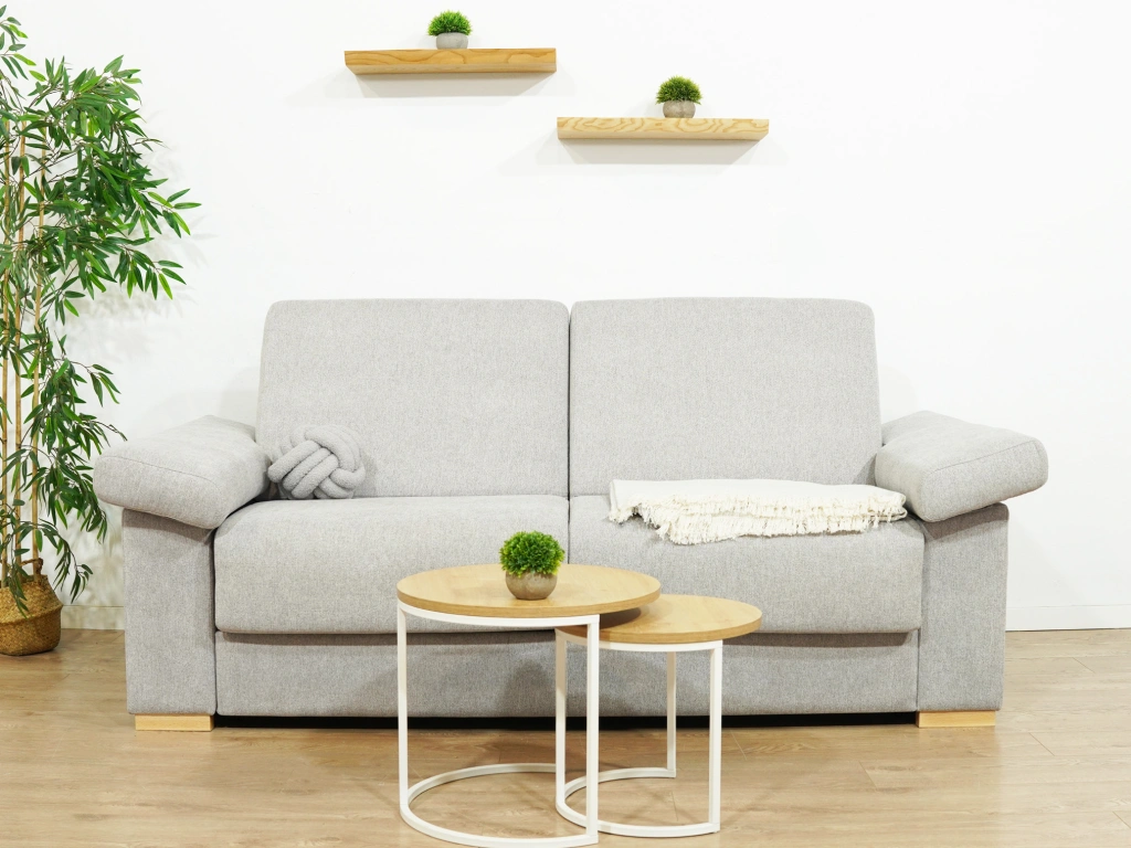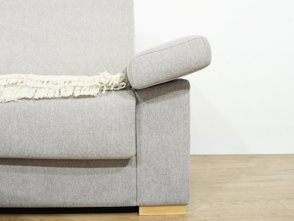 El sofá cama Plan A está hecho con espuma de 30kg suave y su colchón es de 18 centímetros de grosor, aportando la máxima comodidad. Las patas bajas de madera aseguran una resistencia máxima y sus brazos rellenos de fibra serán tu mejor aliado para hacer la siesta o acostarte a la larga.