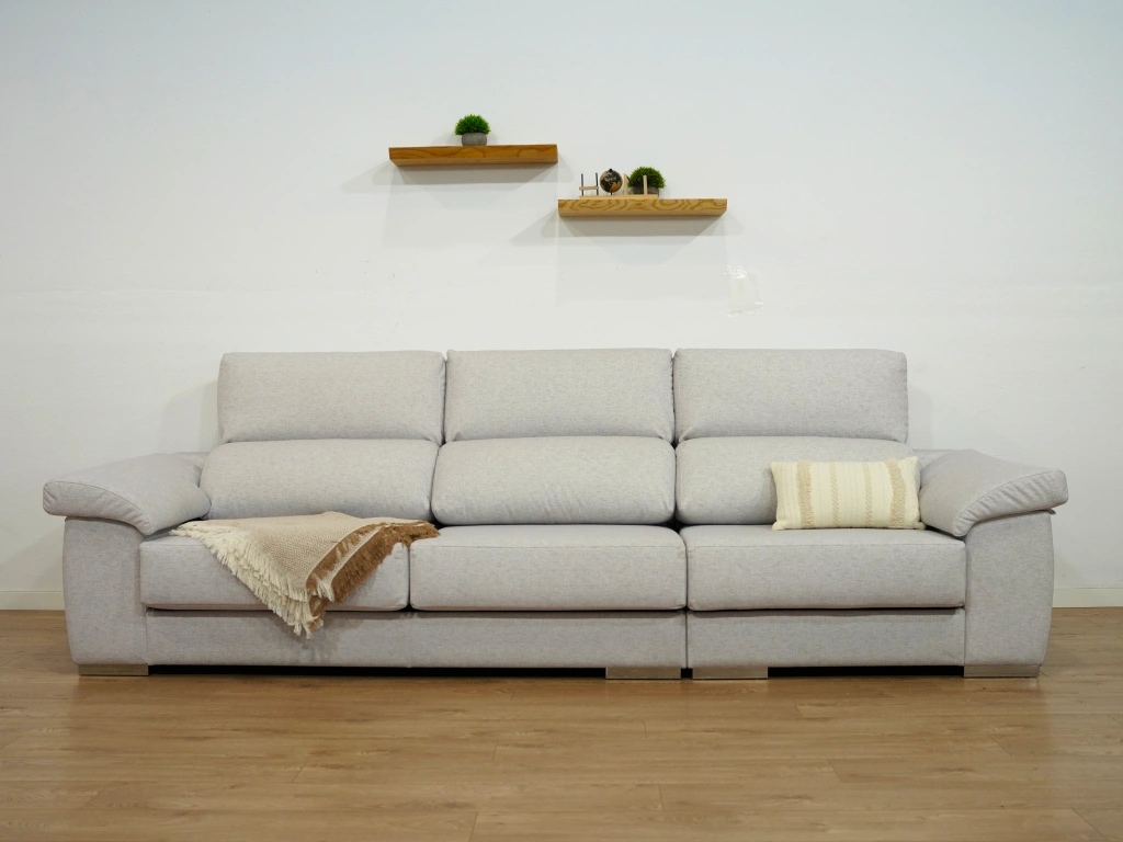 Los asientos son el punto fuerte de este sofá. Su gran profundidad junto a su espuma de 35kg de densidad suave permite que sea todo un lujo descansar sobre él. Además, cuenta con correderas posicionales de 4 posiciones para evitar el deslizamiento involuntario una vez sentados.