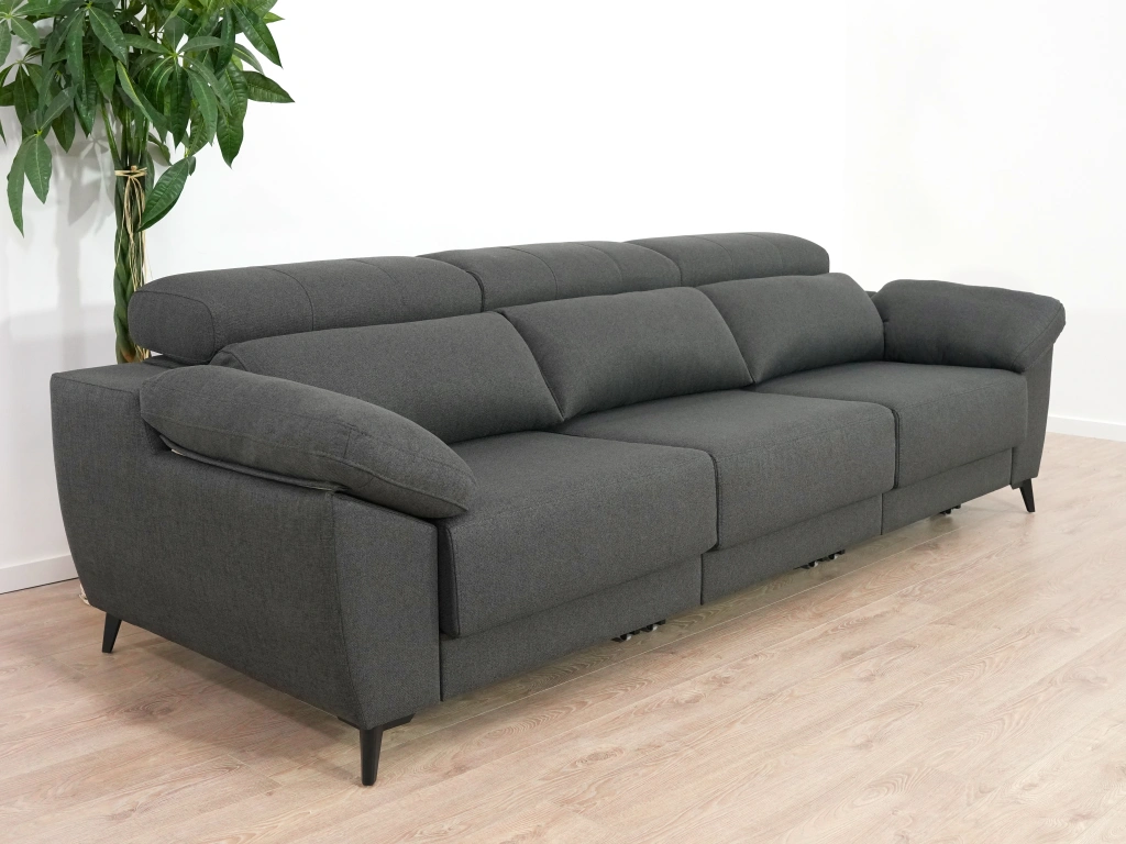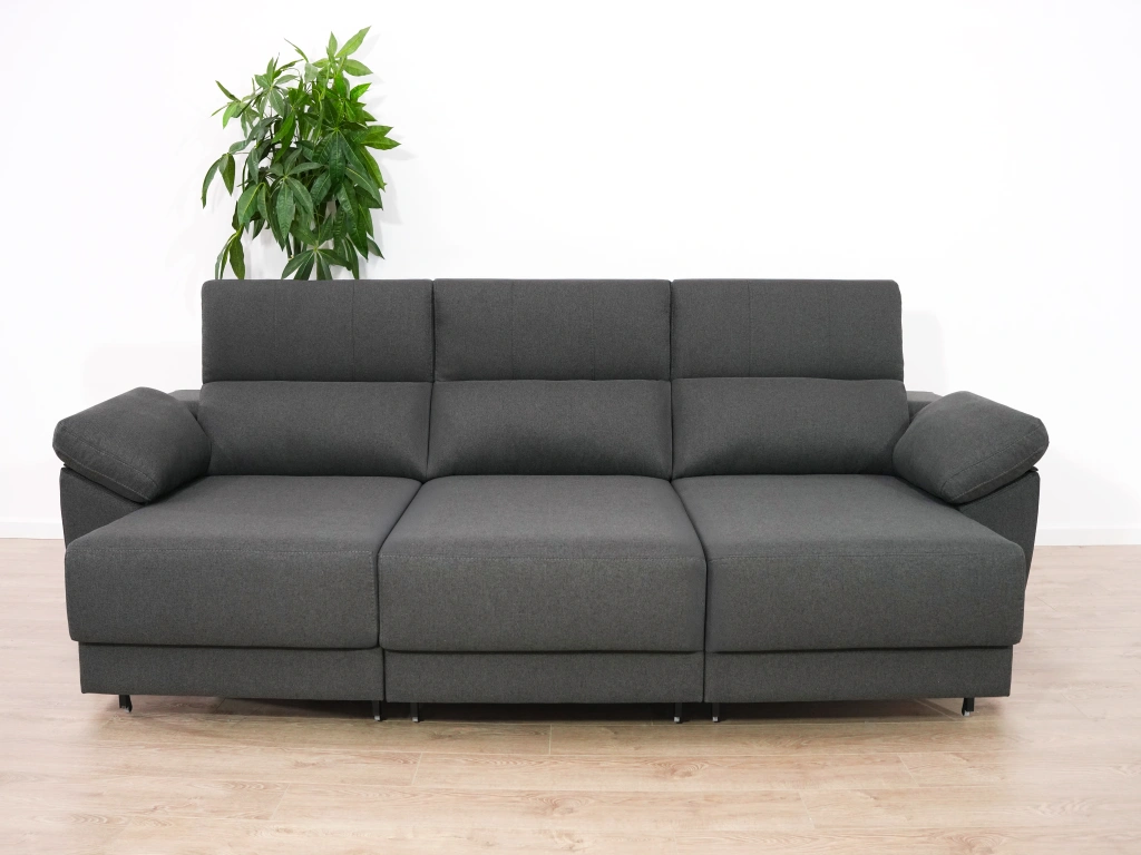 El respaldo de este sofá es único. Ideal para gente con dolores de espalda. Su riñonera, en la que apoyamos la espalda, es de fibra hueca y la sensación de apoyo es inmejorable. El cabecero es posicional con mecanismo de carraca lo cual nos aporta múltiples posiciones para personalizar totalmente la posición.