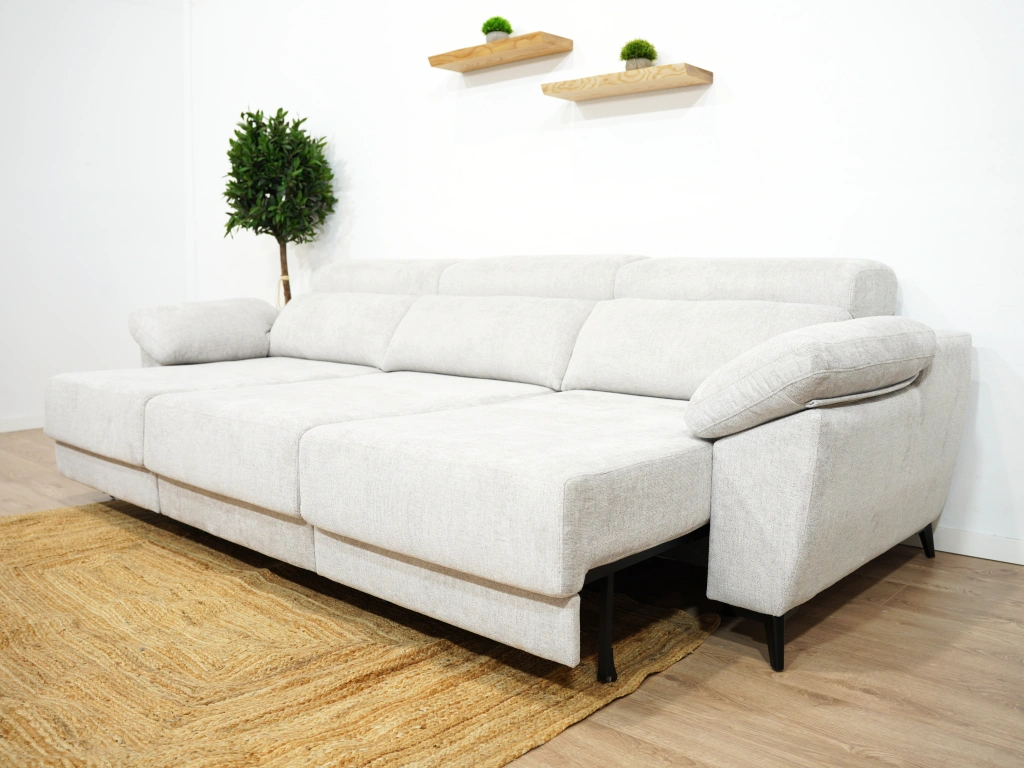 Sofá de alta resistencia gracias a su estructura de madera maciza de pino. Las guías correderas de aluminio con rodamientos son de alta calidad, facilitando la apertura de los asientos.