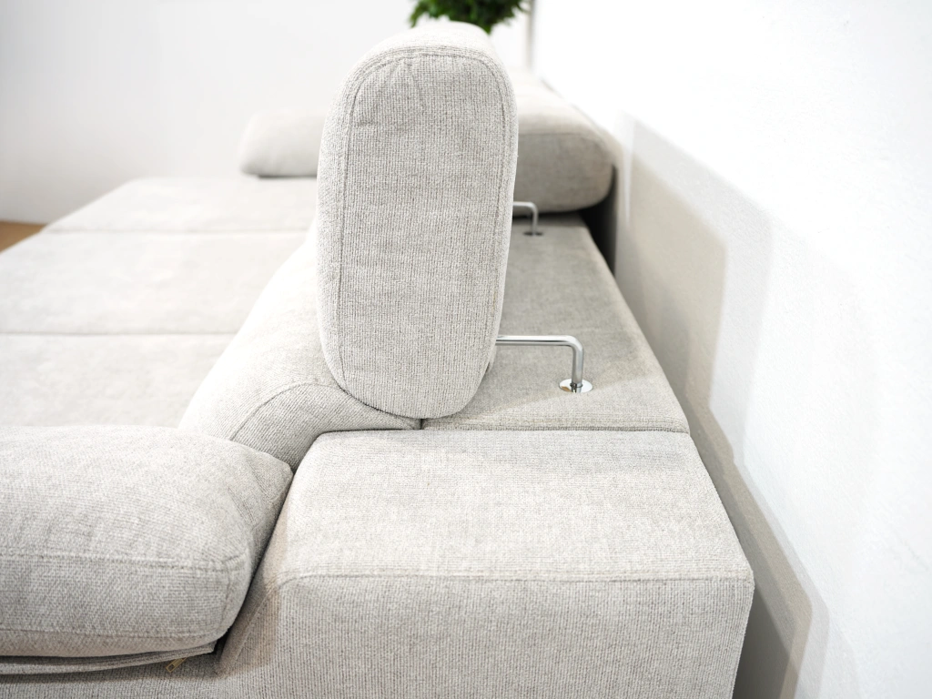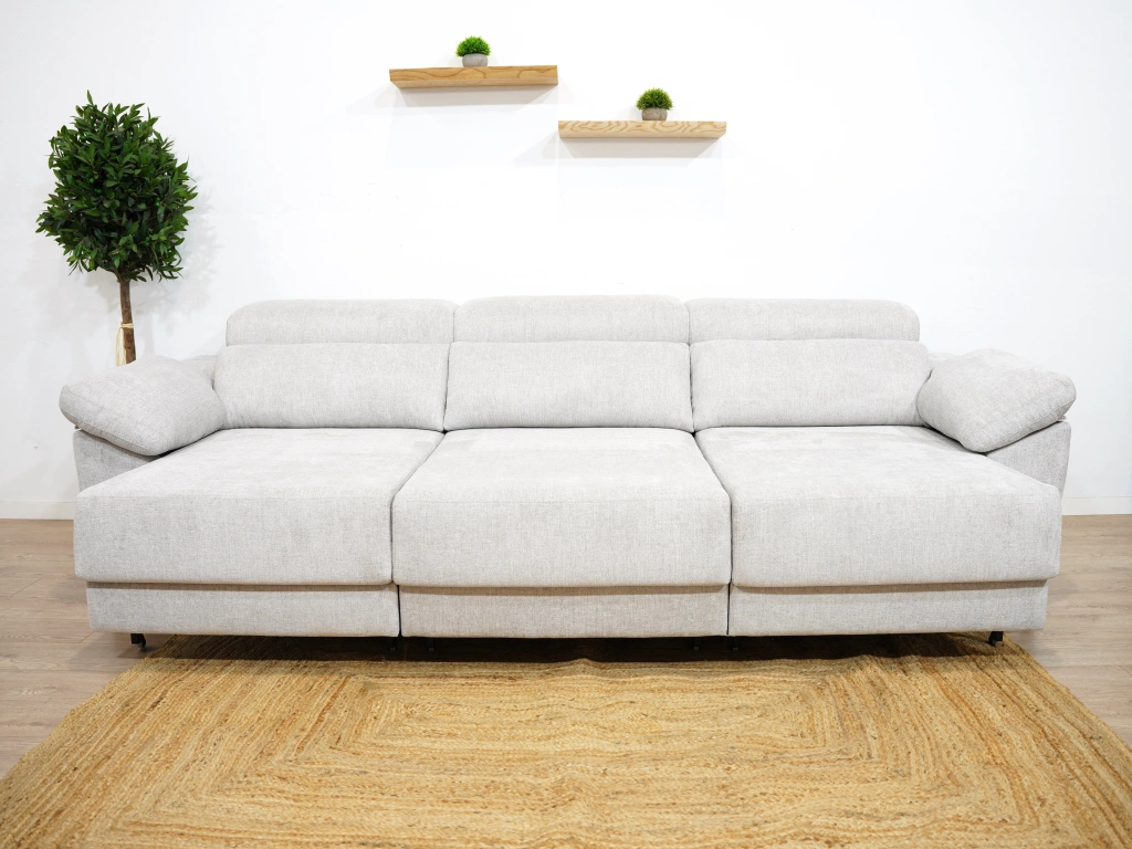 El respaldo de este sofá es único. Ideal para gente con dolores de espalda. Su riñonera, en la que apoyamos la espalda, es de fibra hueca y la sensación de apoyo es inmejorable. El cabecero es posicional con mecanismo de carraca lo cual nos aporta múltiples posiciones para personalizar totalmente la posición.